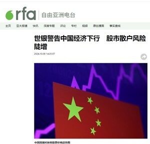 米政府系放送局ラジオ・フリー・アジア(RFA)によれば、中国政府が景気刺激策を相次ぎ打ち出したことから、中国の株式市場には個人株主が相次ぎ参入。国慶節連休(1~7日)明けの8日にも、連休前の上昇が続き市場に楽観的なムードが広がっていたが長続きしなかった。