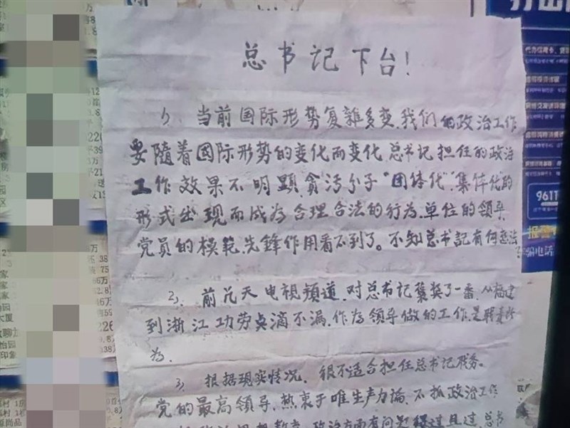 台湾メディアのNOWnewsによると、中国で9月3日に行われた抗日戦争勝利80周年の記念行事と軍事パレード(九三閲兵)を前に、北京で「総書記は辞めよ」と題する壁新聞が張り出され、海外のネットで拡散している。