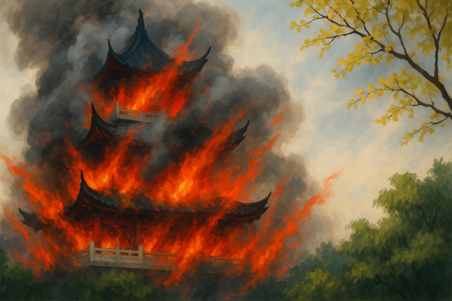 江蘇省張家港市の鳳凰山景区で11月12日午前11時24分ごろ、復古調の楼閣「文昌閣」で大規模火災が発生し、楼閣が全焼した。火勢は急速に拡大し、木造部分はすべて焼き落ち、鉄筋コンクリートの骨組みだけが残った。火災発生時の映像がSNSで拡散すると、「1500年の歴史を持つ永慶寺が焼失した」とする誤った情報が瞬く間に広がった。