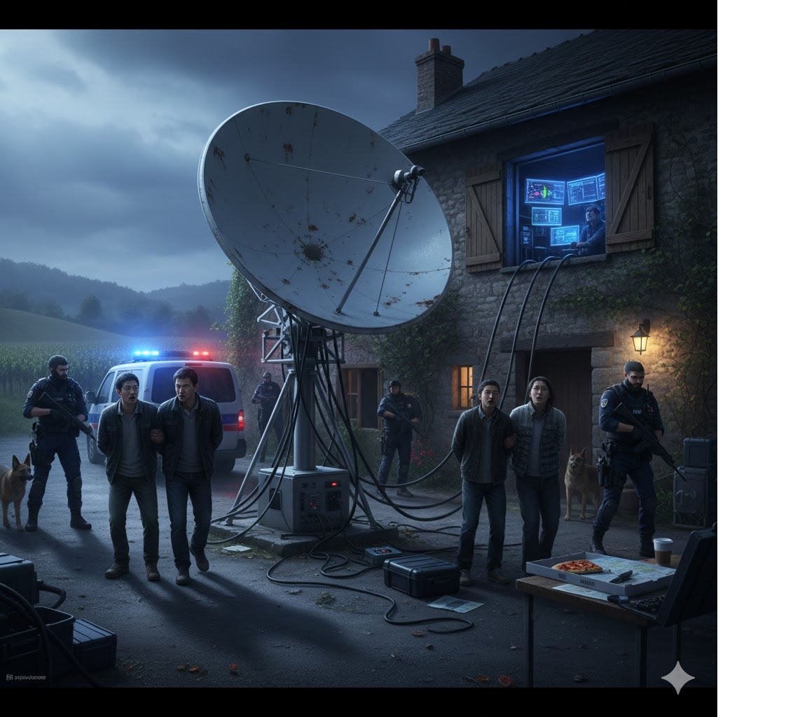 事件の発端は1月30日、フランス南西部ジロンド県に位置する民泊施設の近隣住民による通報であった。住民は施設に直径約2メートルの巨大な衛星アンテナが設置されていることに不審を抱き、同時期に地域一帯でインターネット通信障害が発生したことから警察へ連絡した。翌1月31日、捜査当局が家宅捜索を実施したところ、アンテナに接続された特殊なコンピュータシステムが発見された。この装置は特定の周波数を妨害し、軍事組織間の通信を含む衛星データを不法に傍受・取得できる機能を備えていたという。