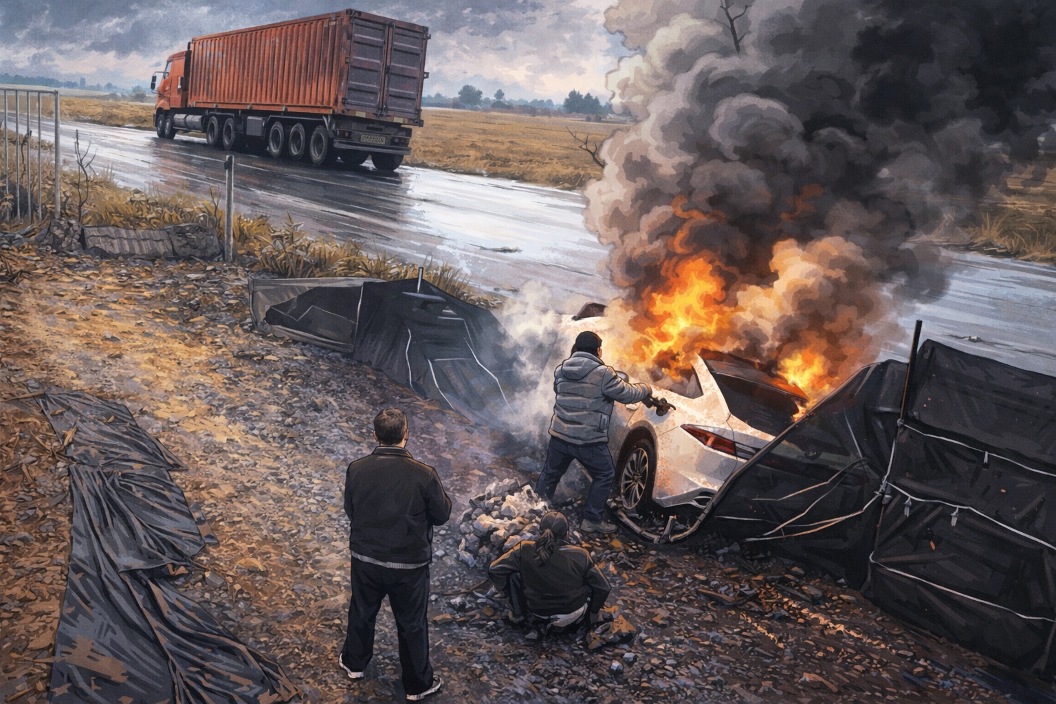 動画には、白い服を着た男性が路肩の石を拾って事故車の窓を割り、自らも手に重い火傷を負いながら、わずか20秒間で後部座席から3人の乗客を引きずり出す勇敢な姿が映っている。 映像が拡散された当初、この男性は「無私の英雄」として称賛を集め、公的な善行表彰(見義勇為)を求める声が相次いだ。